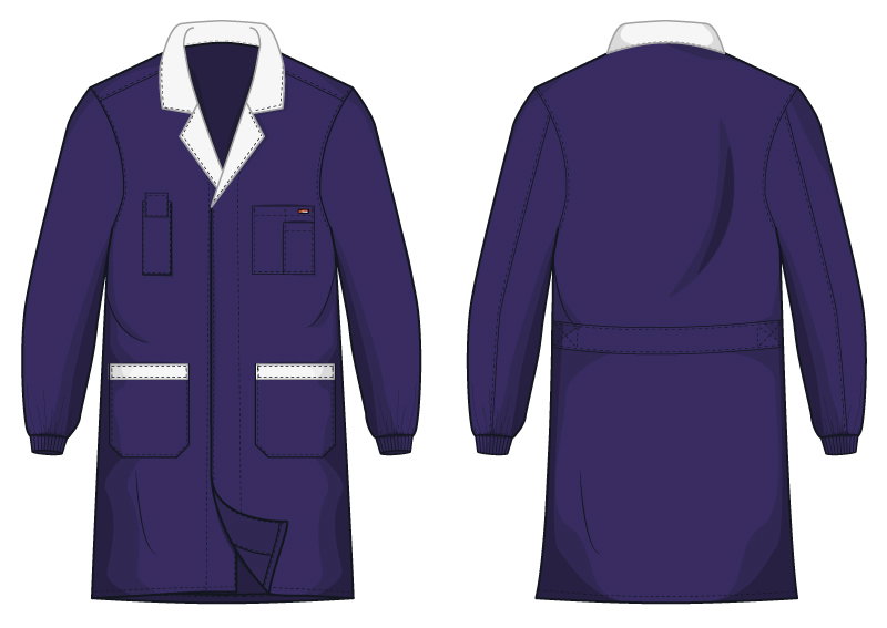 Collo reverse / Chiusura anteriore con 3 bottoni in resina coperti / Due tasche in vita / Una tasca portacellulare petto con pattina e velcro / Un taschino petto con soffietto centrale e portapenna / Polsino in maglia 100% poliestere / Martingala cucita / Accessori in tono / Collo e mostre colorate a contrasto / Bordi tasche colorati a contrasto / Il giromanica